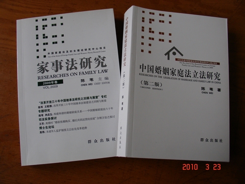 1.《家事法研究》(2009年卷),陈苇主编,冉启玉副主编,北京:群众出版社2010年1月第1版。