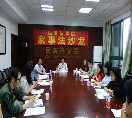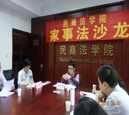 2016年5月7日下午2时30分,“民商法学院家事法沙龙”(第17期)在西南政法大学渝北校区民商法学院会议室举行。此次学术论坛由民商法学院博士生导师陈苇教授担任指导教师,2015级婚姻法博士生董思远担任主讲人。出席此次会议的有:山西大学商务学院的访问学者潘淑岩老师,2014级博士生王巍,2015级博士生陈钊,2016级博士后张洪利,2013级硕士生齐健、刘世国、佘俊,2015级硕士生杨超、李文娟、刘宇娇、鲁瀚阳、欧忆虹、张文彩、郭庆敏等同学。