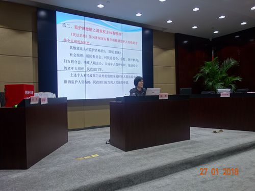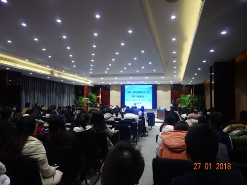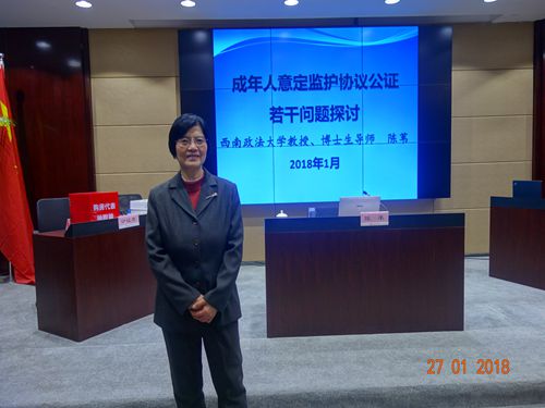 2018年1月27日上午9点,在四川省成都市四川律政公证处会议室,陈苇教授应邀在此为公证员做讲座。此次讲座的题目为《成年人意定监护协议公证若干问题探讨》,四川律政公证处近180名公证员出席此讲座。