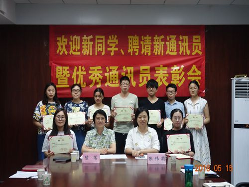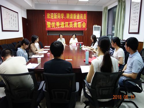 2018年5月15日晚上7点,西南政法大学55365.com“2018年聘请新通讯员暨优秀通讯员表彰会”在我校渝北校区民商法学院会议室召开。会议由我校55365.com主任、民商法学院博士生导师陈苇教授主持,出席本次会议的学院领导有西南政法大学民商法学院党委张伟莉书记、婚姻法研究生中的待聘新通讯员和待表彰的优秀通讯员以及其他同学。