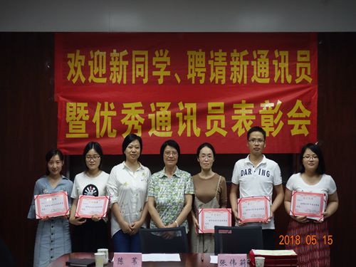 首先,张伟莉书记分别宣读了2017年度的五位优秀通讯员名单以及2018年新聘请的十位通讯员名单,并与陈苇教授一起为他们颁发了荣誉证书、聘书。其次,陈苇教授对新通讯员讲解工作要求,她说明今后的通讯员统一由李俊副教授负责管理和指导工作。她希望同学们在今后的工作中认真负责,与自己的导师要保持密切联系,及时报道导师的教学、科研及参加学术会议等情况,使网站新闻的内容更加充实,努力将我们研究中心网站建设得更好。最后,张伟莉书记、陈苇教授与优秀通讯员、新通讯员一起合影留念。此次会议在大家的掌声中结束!