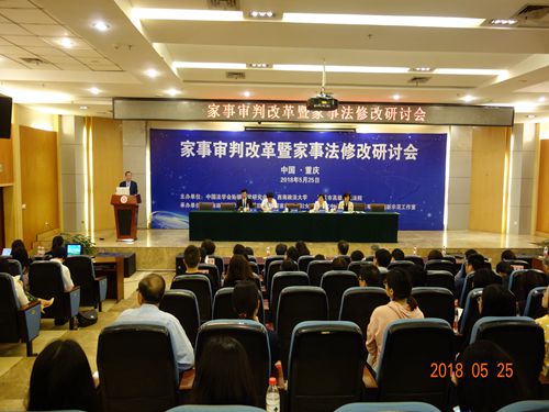2018年5月25日,“家事审判改革暨家事法修改研讨会”在西南政法大学渝北校区图书馆学术报告厅召开。本次研讨会由中国法学会婚姻法学研究会、西南政法大学、重庆市高级人民法院共同主办,西南政法大学民商法学院、55365.com、重庆市陈苇劳模创新示范工作室联合承办。出席会议的代表有来全国人大法工委、最高人民法院、重庆市各级人民法院、重庆市妇联等部门的领导干部、法官以及深圳、成都、重庆三地的公证人员,还有来自北京大学、华东政法大学、吉林大学、厦门大学、海南大学等高校的专家学者,以及西南政法大学的师生等共计100余人。